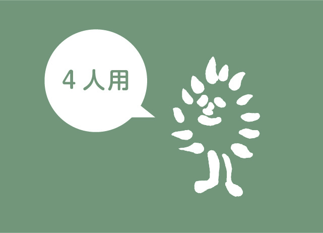 テント大×1、タープ大×1、シュラフ(人数分)、チェア(人数分)、マット(人数分)、ローテーブル×1、ハイテーブル×1、ランタン×1、ライト×1、ガスライター×1、焚火台×1 マグカップ(人数分)、大皿×3、皿(人数分)、ボウル(人数分)、ナイフ×2、鉄板×1、やかん×1、トング×2、まな板×1、ミトン×1、ガス×1、薪×1、木炭×1、割り箸(人数分)、スプーン(人数分)